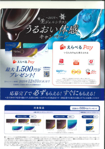 はじめてアキュビュー対象製品を2箱以上ご購入の方に クオ・カードペイ500円分プレゼント!